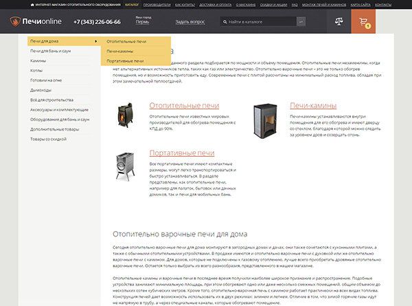 Нажмите на интересующую вас категорию, например, «Печи для дома»
