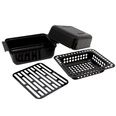 Компактный короб для запекания мяса и рыбы на гриле. Конструкция включает в себя поддон с высокими бортами, крышку для поддона, решетку гриль и перфорированный поддон. Размеров аксессуара достаточно, чтобы за один раз запечь крупную курицу.