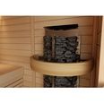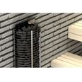 • Вертикальное размещение камней позволяет менять характер тепла в зависимости от подачи воды: сверху для интенсивного горячего парения и сбоку для мягкого и легкого пара.