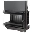 В широкую распашную угловую дверцу слева вставлено Г-образное стекло из жаропрочной стеклокерамики Robax® поверх узкой рамки, которое увеличивает обзор на игру пламени из-за отсутствия чугунной стойки. Каминная топка предназначена для установки в колонну, во внешний выступ перегородки или на специальный подиум.